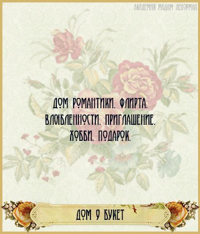 8 — Дом Гроба в Большом раскладе Ленорман:Дом смерти и конца событий. Дом Гроба в Большом раскладе ЛенорманДом Гроба – дом пустоты, окончания чего-то, печалей, болезней и застоя. По сути в этом доме человек завершает свое пребывание на земле. По нему можно судить насколько он смог выполнить свою миссию и чего достиг в жизни.Что должно окончится в загаданный период, то и попадет в этот дом.9 — Дом Букета в Большом раскладе Ленорман:Дом романтики. Флирта. Влюбленности. Подарков. Дом Букета в Большом раскладе ЛенорманДом Букета – дом радости и невесомой лёгкости бытия. Показывает, что является для человека праздником жизни, как он наслаждается и отдыхает. Что является для Кверента радостью, то и попадет в 9 дом (для кого-то это танцы, а для кого-то отдых на природе). Также может говорить о приглашениях и хобби как непрофессиональном творчестве. Дом Букета показывает насколько человек романтичен, склонность к влюбчивости и любвеобильность. В 9 Доме букетно-конфетный период в жизни человека, его фантазии и мечты по поводу отношений. Также можно увидеть насколько человек склонен обожествлять образ любимого и насколько трепетно относится к периоду построения новых отношений.10 — Дом Косы в Большом раскладе Ленорман:Дом опасности. Резких болезненных событий. Дом Косы в Большом раскладе ЛенорманДом Косы - опасность, внезапность, отделение, расставание, резкие неожиданные события с негативным характером, форс-мажор, срочные операции и т.п. По 10 дому идут очень болезненные события, который как психологически, так и физически могут больно резануть, глубоко ранить и порвать на куски. Это важный кризисный дом, он предупреждает о грядущих опасностях. Если в него попала карта Дерево – предстоит операция или проблемы с физическим телом (травмы); если карта Кольцо – велик шанс разрыва договоренностей и отношений.По дому Косы идут серьезные и значительные перемены, травмоопасные события, как физически, так и психически. Символ Косы здесь играют большую роль – отрезание, отсечение, человек потеряет что-то навсегда, его насильно избавят от этого. Поэтому 10 Дом Косы часто проигрывается как травма или оперативное вмешательство.В редких случаях может говорить о сборе урожая, но опять же …. «что посеешь, то и пожнешь»11 — Дом Метлы (Плеть, Кнут, Прутья) в Большом раскладе Ленорман:Дом споров. Разногласий и споров. Повторяющихся действий. Наказания. Дом Метлы (Плеть, Кнут, Прутья) в Большом раскладе ЛенорманЭто дом – дискуссий, переговоров, разговоров, ссор, жарких дискуссий со взрывными эмоциями, конфликтов, драк, противоречий, переговоры на повышенных тонах, активного общения. Показывает способность Кверента отсеивать лишнее, отделять сор от зерен, это касается как информации, так и действий. Кверент выметает что-то из своей жизни, то что его отягощает, мешает, он избавляется от ненужных предметов, связей. Но может наоборот накапливать разный хлам и мусор, держаться за него.Также Дом Метлы говорит о способности отстаивать свою позицию, но и склочность, готовность идти на конфронтацию по любому поводу, ссориться из-за несовпадения взглядов. Дом карты Метла может указывать и на внутреннее смятение, конфликт с самим собой.Также 11 дом может показать наказания и штрафы.12 — Дом Совы в Большом раскладе Ленорман или Дом Птицы:Дом разговоров, пересудов. Дом Совы в 
