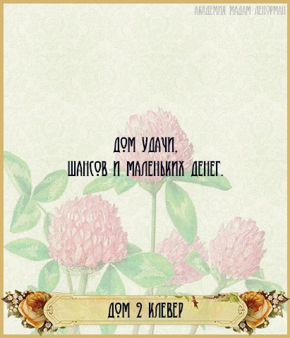 | ЛЛенорман дома для БРЛ:1 — Дом Всадника в Большом раскладе Ленорман:Дом контактов. Общения. Информации. Новостей и активности. Дом Всадника в Большом раскладе Ленорман1 Дом – очень важен, он, как и астрологический 1 Дом показывает то первое впечатление, которое производит человек, на которого сделан расклад. По нему можно предсказать как человек выглядит, каковы его манеры, основные черты характера, образ мышления. В общем – первичные характеристики типа личности, главные качества.Дом Всадника в Большом раскладе – это дом контактов и сообщения, идей, дом мыслей, того, над чем Вы в данный момент раздумываете. С помощью первого дома можно увидеть какая тема для человека наиболее актуальна. Первый дом дает динамику и движение, это что-то подвижное, то что происходит прямо сейчас или вот-вот случится: приход скорых вестей, курьер уже на пороге и вот-вот постучит в Вашу дверь. Поэтому попавшая в этот дом карта укажет на то, в какой сфере стоит ждать продвижения вопроса и активного развития событий.Также первые 4 дома (Дом Всадника, Дом Клевера, Дом Корабля и Дом Дома) показывают те события, которые произойдут в самое ближайшее время. Первый дом задает фон раскладу.2 — Дом Клевера в Большом раскладе Ленорман:Дом удачи и маленьких денег. Дом Клевера в Большом раскладе ЛенорманДом Клевера – дом маленького счастья, маленькой удачи и шанса, небольших деньг. Это дом счастливого случая. В чем Кверенту повезет. Также 2 Дом Клевера показывает поведение Кверента по отношению к окружению: умение находить общий язык, проявлять коммуникабельность, а также сообразительность, эти качества во многом определяют сможет ли человек воспользоваться подвернувшейся удачей, которая часто может исходить от окружающих.3 — Дом Корабля в Большом раскладе Ленорман:Дом путешествий и передвижений. Дом Корабля в Большом раскладе ЛенорманДом Корабля – дом поездок, движения, перемен, устремлений, удаления, тяги к дальним расстояниям, а также ностальгии, тоски, то, по чему человек тоскует и томится в разлуке. 3 Дом корабля показывает насколько человек активен, насколько быстро готов взяться за новые дела и броситься на покорение новых горизонтов. Дом путешествий и передвижений. Также по этому дому можно смотреть предприимчивость и успешность в сфере бизнеса и работы, восприятия новых идей и способность к росту и продвижению. Это дом длительных перемещений и готовности к ним, человек готов ради работы кардинально сменить место жительства. Он готов к новому, все время хочет что-то менять и развивать, аналогия с мутабельными знаками, особенно с Рыбами и Стрельцом. В этом доме ощущаются порывы ветра, когда сама жизнь подхватывает и несет, а человек как парусное судно, способен, управляя этими порывами двигаться в нужном направлении. В худшем случае – это флюгер, который болтается туда-сюда и меняет свое направление по воле внешних обстоятельств.Характерное качество самой карты Корабль, а также его дома – замедление и длительные сроки.4 — Дом Дома в Большом раскладе Ленорман:Дом семьи и недвижимости. Дом Дома в Большом раскладе ЛенорманЭто дом стабильности, семьи, а также близкого окружения и кровных родственников, всего частного и интимного пространства. 4 дом – сигнифкатор всех вопросов по недвижимости, земельным участкам, он касается всех имущественных вопросов.Так